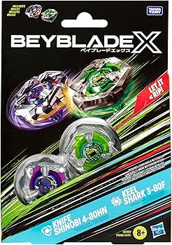 Beyblade X Knife Shinobi 4-80HN and Keel Shark 3-80F Top Dual Pack Set