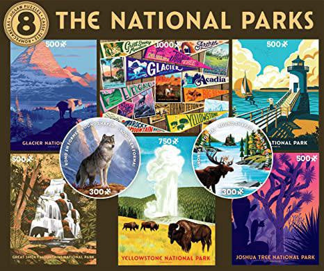 - National Parks (8 in 1) Multipack Bundle Set w/ TWO ROUND Jigsaw Puzzles & BONUS POSTER!