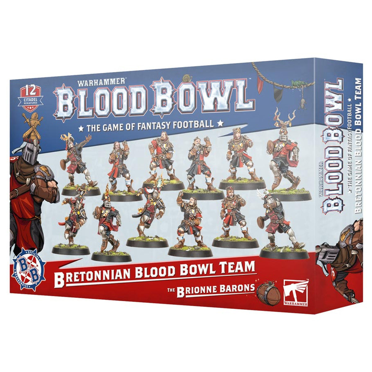 The nobles of Bretonnia bring their very best to the Blood Bowl pitch, using heavily armoured Knights and loyal Squires to dominate the field and break through defensive lines before slaying forth to the end zone. Each team comes with 12 multi-part plastic players – six Bretonnian Squire Linemen, two Knight Catchers, two Knight Throwers, and two Grail Knight Blitzers – as well as two double-sided Blood Bowl coins, two Turn and Re-roll Markers, and four balls.