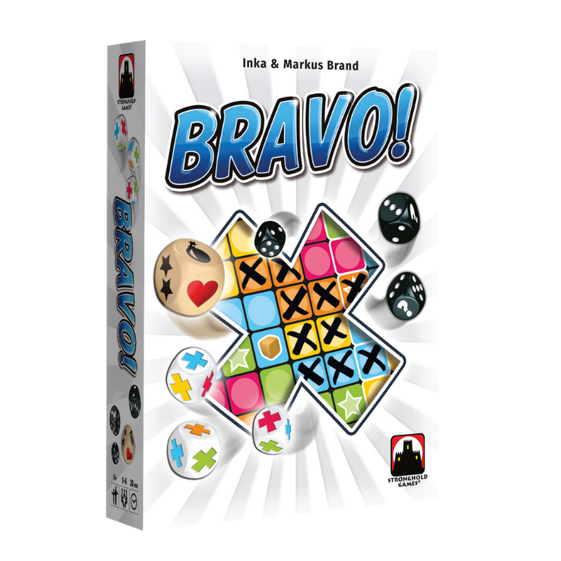 Bravo!is an ingenious, addictive game featuring an enhanced scoring pad and seven dice, including a special die with exciting effects, for endless variations and opportunities. Players must roll dice and choose which boxes to fill in to maximize their points on the scoring pad.