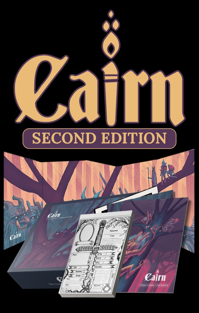 Cairn is the DriveThruRPG Platinum Best Selling adventure game about exploring a dark and mysterious Wood filled with strange folk, hidden treasure, and unspeakable monstrosities. Character generation is quick and random, adventures are tense and reward careful exploration, and combat is frantic and deadly. The first edition rules are freely available here, and should be familiar to any fans of Knave and Into the Odd.