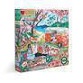 Camper Life1000 piece square adult jigsaw puzzle captures the continued wanderlust of this ubiquitous couple, now at a bucolic camping site near the beach where they can pull up and park their camper van to unload for a day’s picnic or a week’s vacation in the treehouse to unplug for a bit. Throw down the blanket, uncork the wine, and have a nice off-the-road lunch with the one you love.