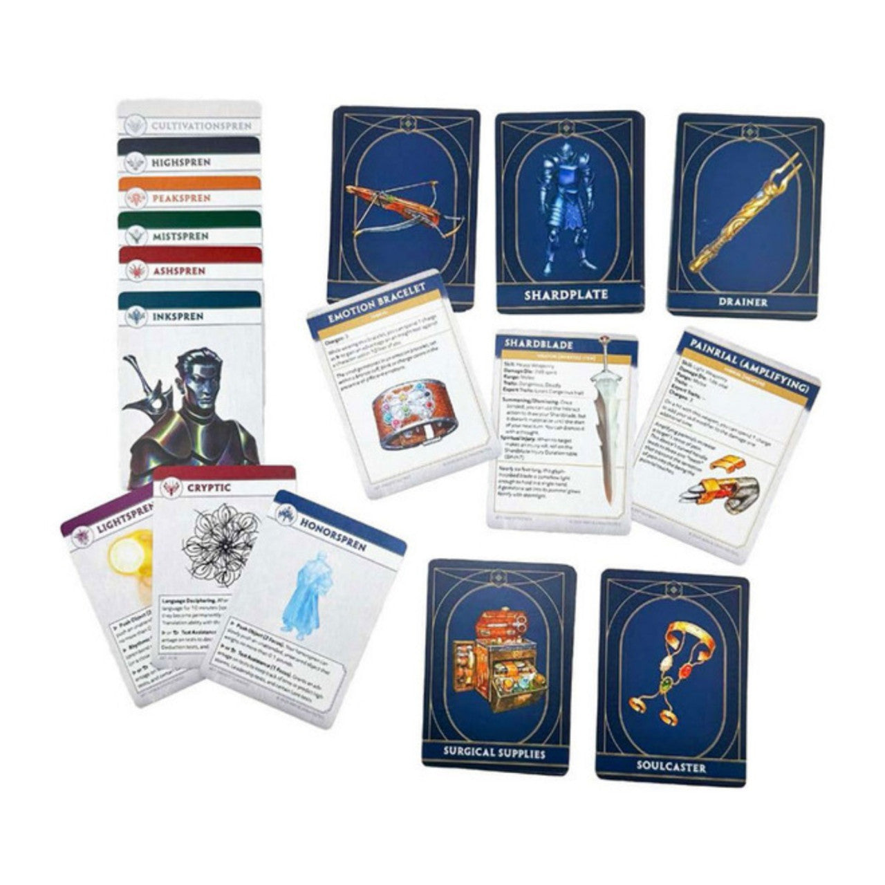 Beyond gear, the deck includes 9 special spren cards, rewarding characters who swear their First Ideal and form a Nahel bond. These radiant companions come to life as collectible, visually striking cards, offering narrative depth and mechanical support for Radiant characters.
