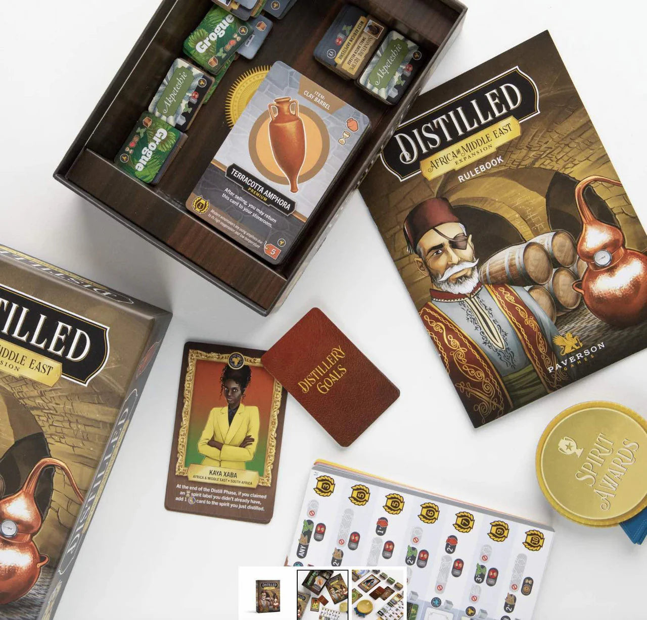 The Distilled Africa and Middle East Expansion adds over 100 cards and tokens to the game, including new recipes, spirits, identities, upgrades, and more to expand and diversify your Distilled gameplay experience!
