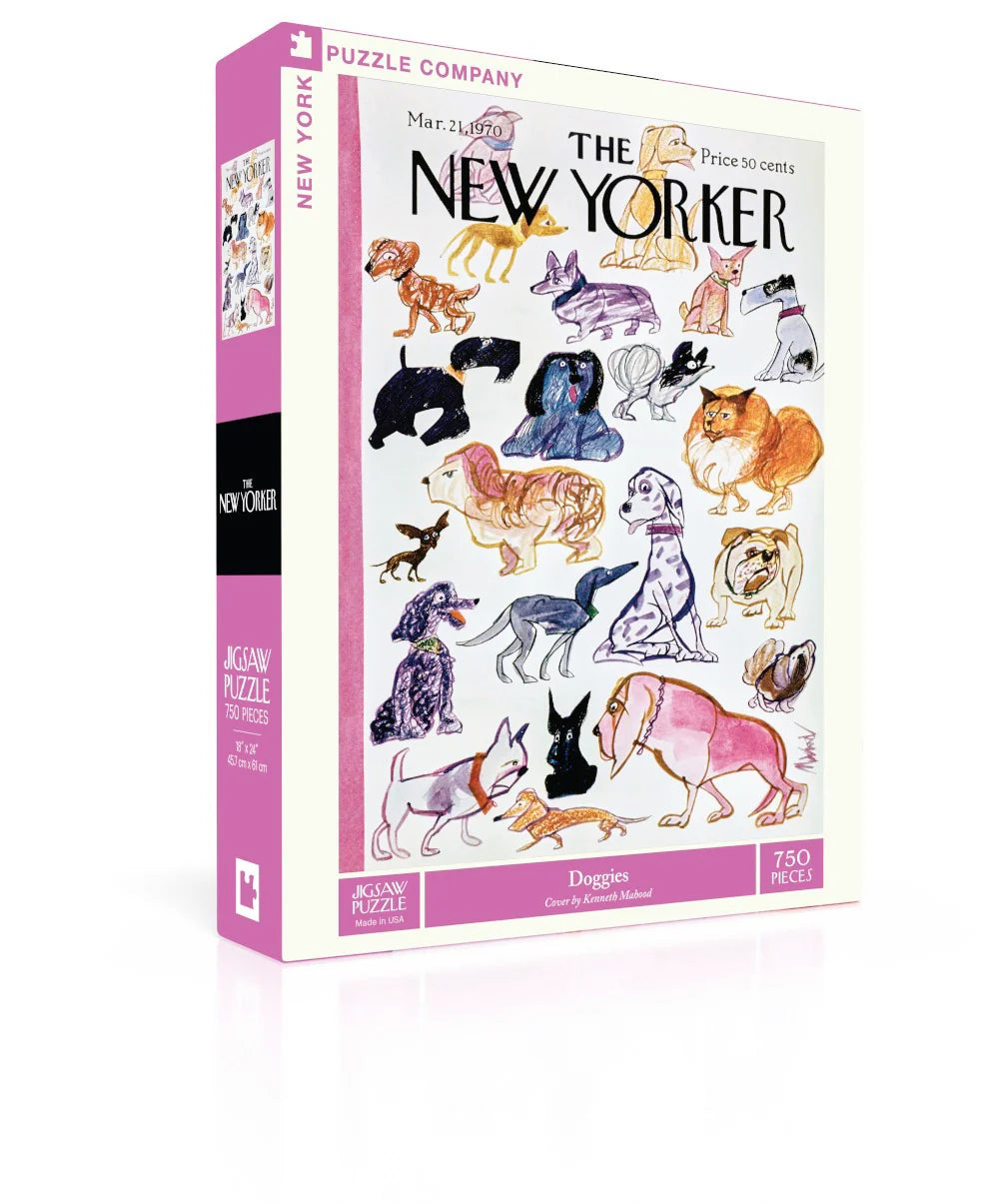 Delight in the whimsical world of dogs with the "Doggies" 750-Piece Jigsaw Puzzle, inspired by the March 21, 1970, cover of The New Yorker magazine. Illustrated by celebrated cartoonist Kenneth Mahood, this charming artwork features a delightful array of dog breeds, from poodles and bulldogs to dalmatians and collies, all captured in a playful and humorous style. Set against a crisp white background, the design highlights the unique personalities of each pup, making it an irresistible choice for dog lovers and puzzle enthusiasts alike.