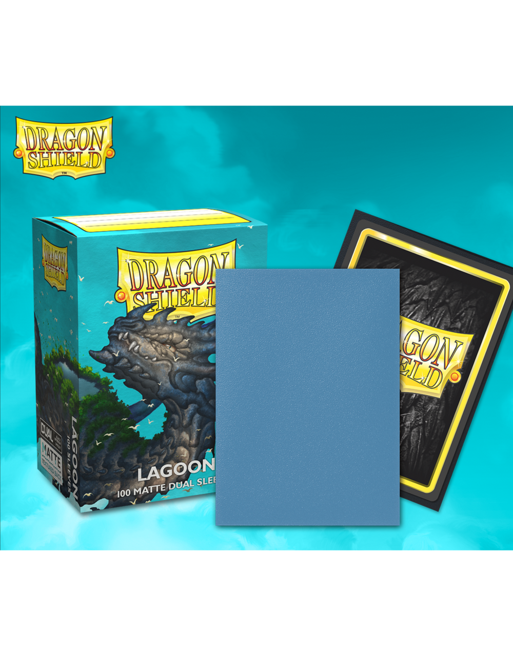Dragon Shield Matte Dual sleeves. Clear front and a textured matte back. Fully opaque sleeves with a black interior, an elegant backdrop for black bordered cards.