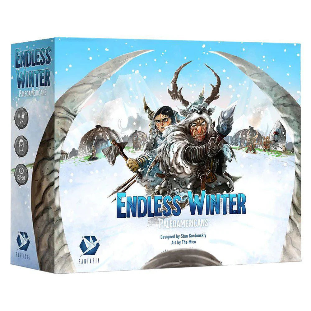 Designed by Stan Kordonskiy (Dice Hospital, Rurik, Lock Up), developed by Jonny Pac (Coloma, Sierra West, Lions of Lydia), a solo mode by Drake Villareal (Solani, Spook Manor), and illustrated by The Mico (Raiders of the North Sea, Paladins of the West Kingdom, Valeria), Endless Winter: Paleoamericans takes place in North America, around 10,000 BCE. Players will guide the development of their tribes across several generations—from nomadic hunter-gatherers to prosperous tribal societies. Over the course of the game, tribes will migrate and settle new lands, establish cultural traditions, hunt paleolithic megafauna, and build everlasting megalithic structures.