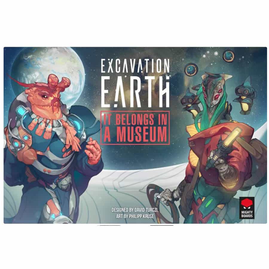 Excavation Earth: It Belongs in a Museum is the second expansion for Excavation Earth. It introduces two new alien races, mysterious artefacts, a deck of technology cards and a whole, new museum board. It Belongs in a Museum adds new ways of scoring that create new paths to playing and winning the game.