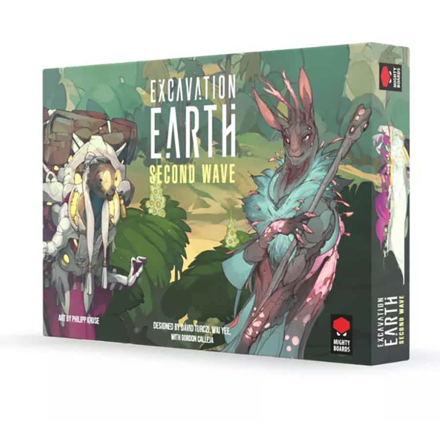 Second Wave is the first expansion for Excavation Earth, introducing two new races - the Collectors and the Influencers - along with new game-play elements and ways of scoring. The Observation Barge, which lets you further manipulate the market demand for artifacts and score points at the end of the game. Achievements add a whole new way of scoring by completing set goals and Racial Wildcards give each race their own, more powerful action card to boost their round!