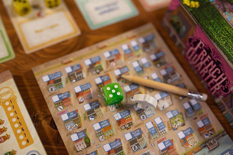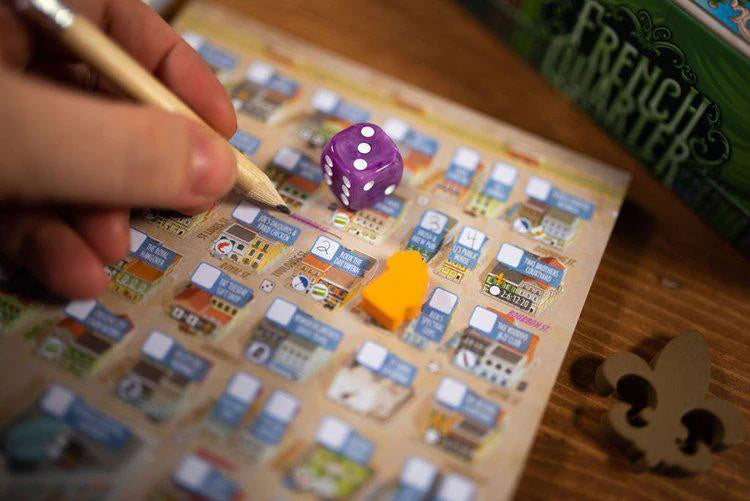 French Quarter is the 4th loaded roll and write in the series by designers Matt Riddle, Ben Pinchback, and Adam Hill. It follows Fleet the Dice Game, Three Sisters, and Motor City.