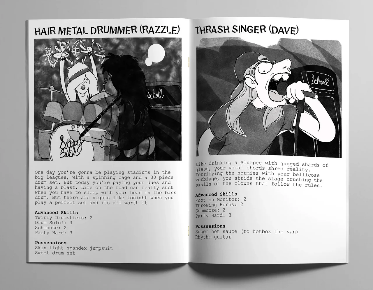 It's 198X and time for your band to go on its first tour! It's going to be a non-stop, fun filled rock n' roll adventure! Great shows, great food, and great friends! It’s gonna be totally gnarly! Except touring kinda sucks... So get ready for a funny, shitty, bumpy ride.
