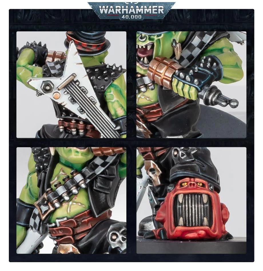 This festive Commemorative Series miniature has no specific rules or battlefield role in games of Warhammer 40,000, however, you are free to use the Goff Rocker miniature as a Boy, Nob, Flash Git, or any other appropriate role found within Codex: Orks.