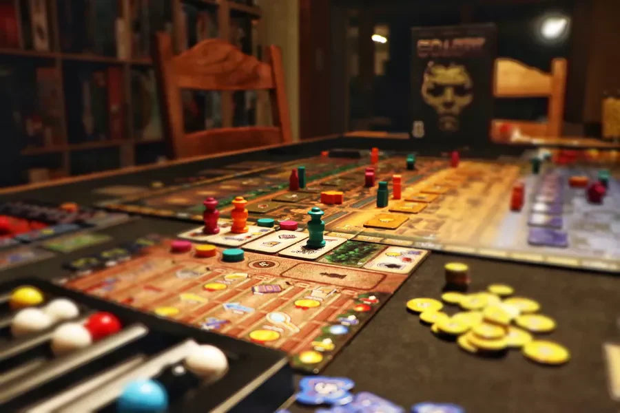 Depending on the colour of the marble you chose you will be able also to move forward your masters on one of the track of the city: External, Commercial, Ancient and Magic.