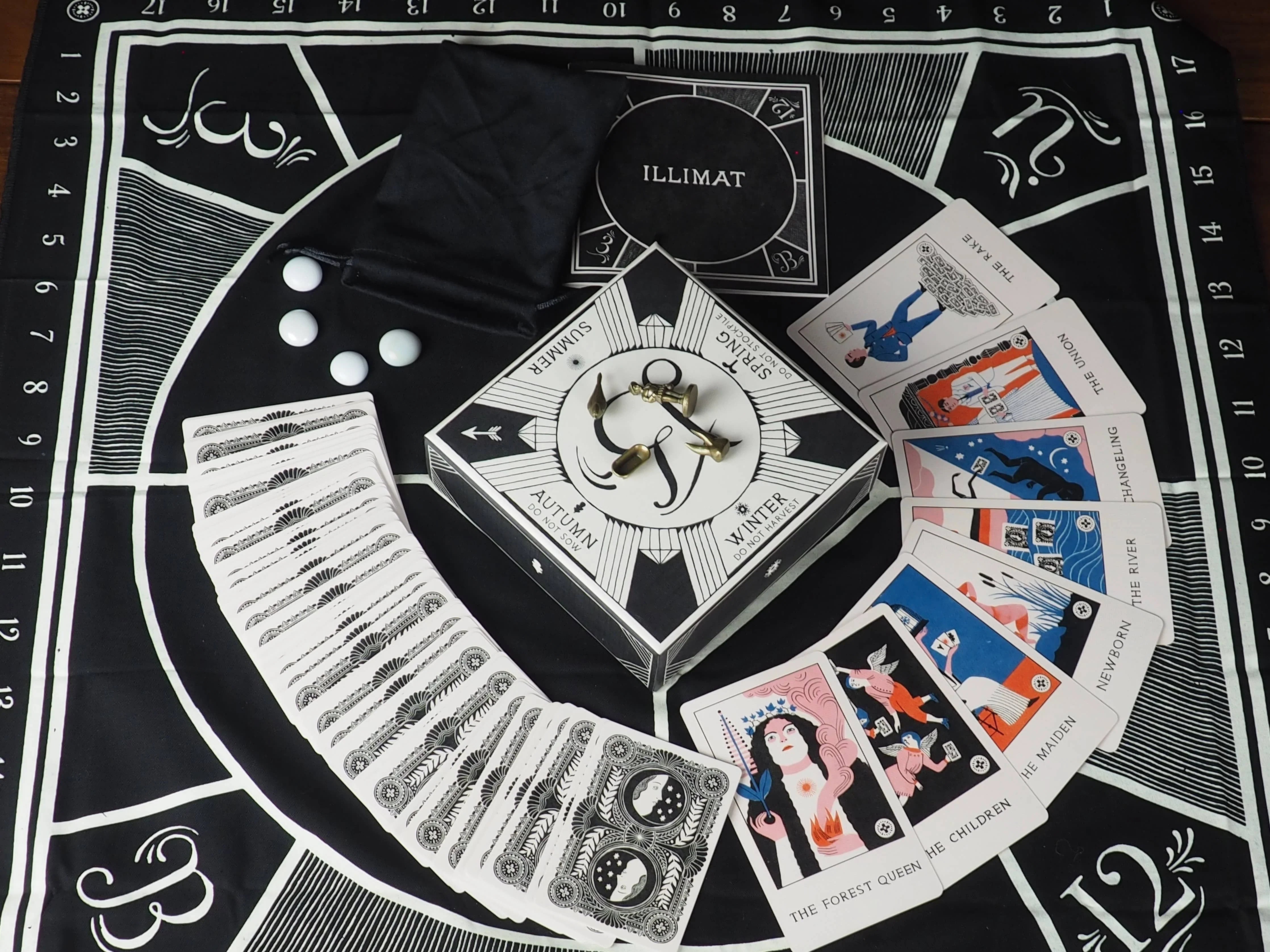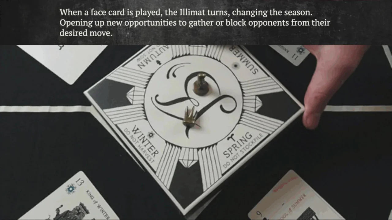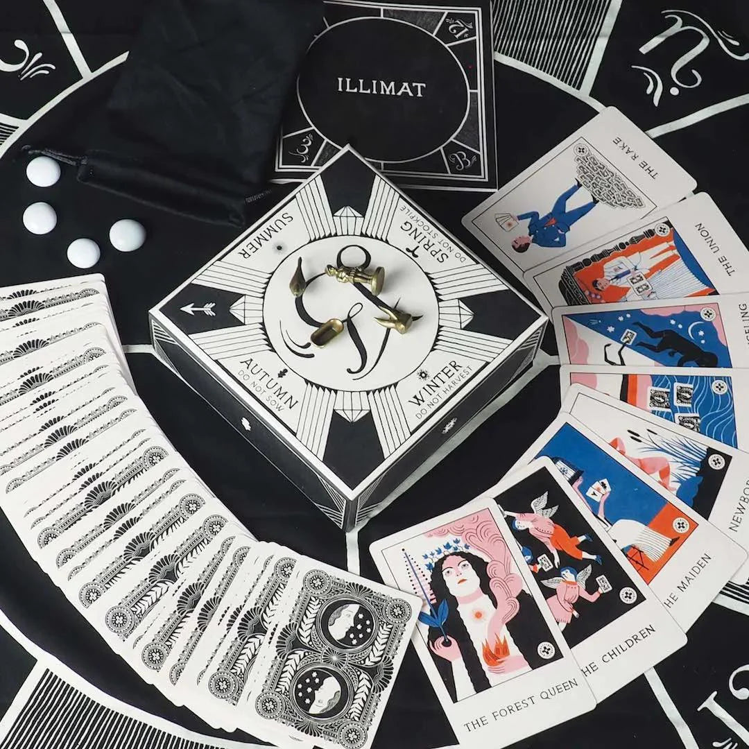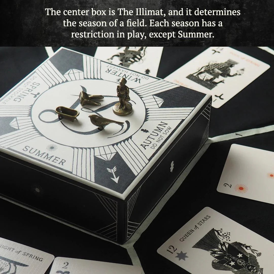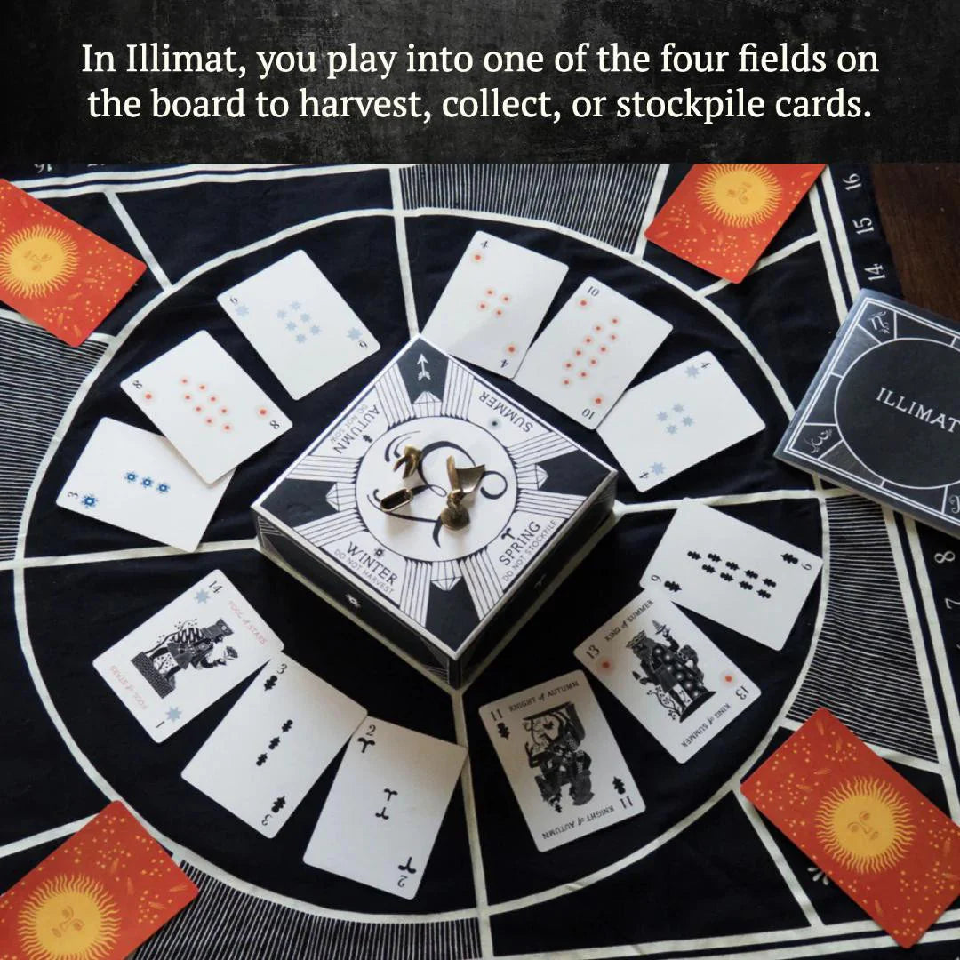 Illimat has the style and flavor of a classic card game with a dynamic twist. As you play, you combine cards and collect them, trying to gather more than your opponents. But hidden luminaries and changing seasons can alter your plans.
