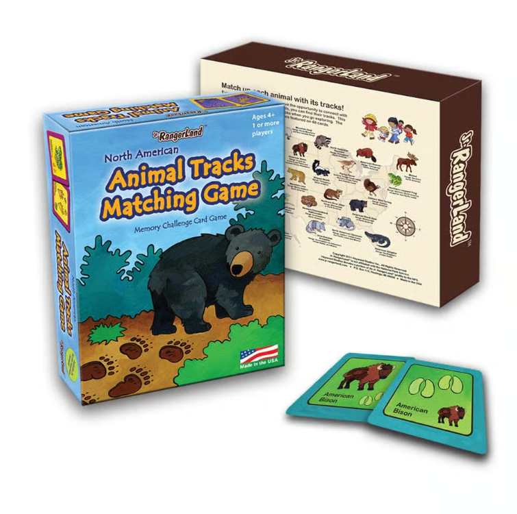 Test your memory with this fun matching card game. Match the animals to their tracks, gather the most pairs and win the game, instructions included for multi-players, individual players and younger players.The back of the box shows the geographic range for each animal. Creative child magazine 2012 game of the year award recipient.