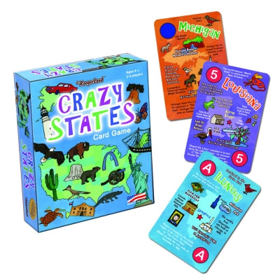 Enjoy a fun twist on the game, crazy 8’s, by playing crazy states. Each card features a different U.S. State. Filled with illustrations and fun facts from our 50 states.
