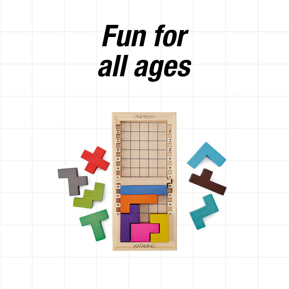 The gameboard is constructed with a movable divider so one can take sets of 4 up to the whole set of 12 pieces and form them into a 5 block by X rectangle. (Where X = the number of wood blocks in your set.)