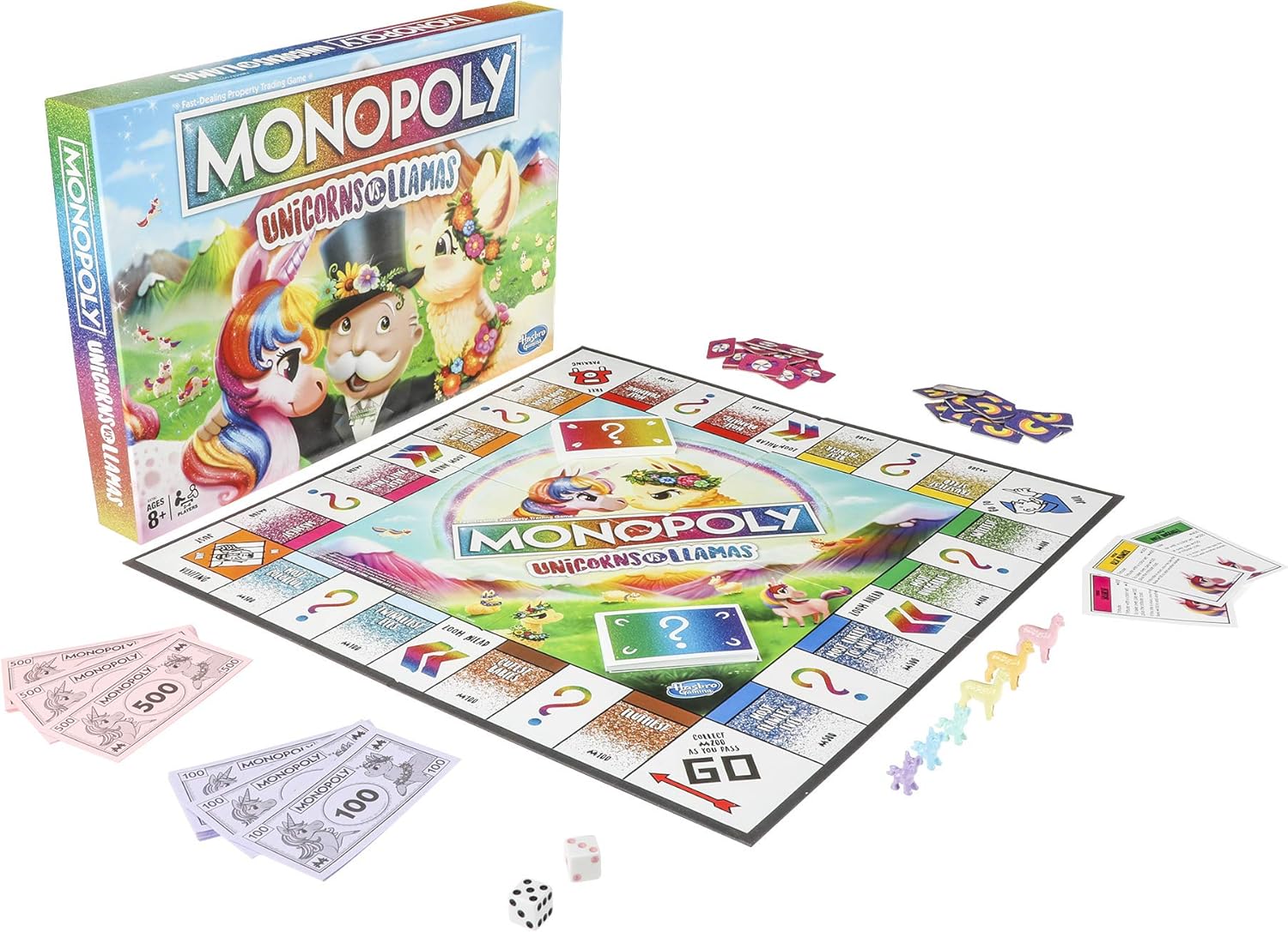 Inspired by the lively rivalry between llamas and the mythical unicorn, the Monopoly Unicorns vs. Llamas game can be a fun game for animal lovers everywhere. This edition of the Monopoly board game is designed to be played in teams. Join Team Unicorn or Team Llama and move around the board to claim titles such Most Colorful, Twinkliest Eyes, Most Charming, and Sweetest. The game ends when all titles have been claimed and the team with the most titles wins. The winners can say that their adorable beast is the best!