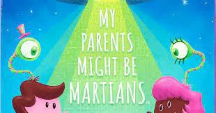 My Parents Might Be Martians plays like a junior version of Poetry for Neanderthals as adults must describe a hidden word to the kids' team using only one-syllable clues. Adults end up sounding like they're from another planet, while kids try to interpret the adults' clues and guess the correct words.