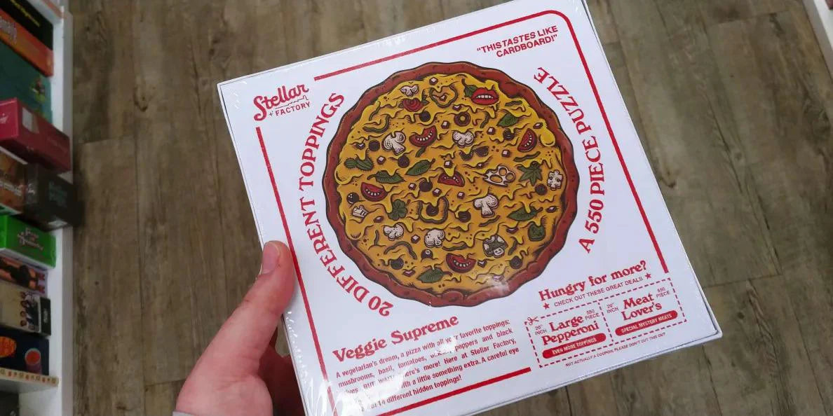 A challenging 550-piece puzzle featuring some common (and not so common) toppings you'd find on a Veggie Supreme pizza