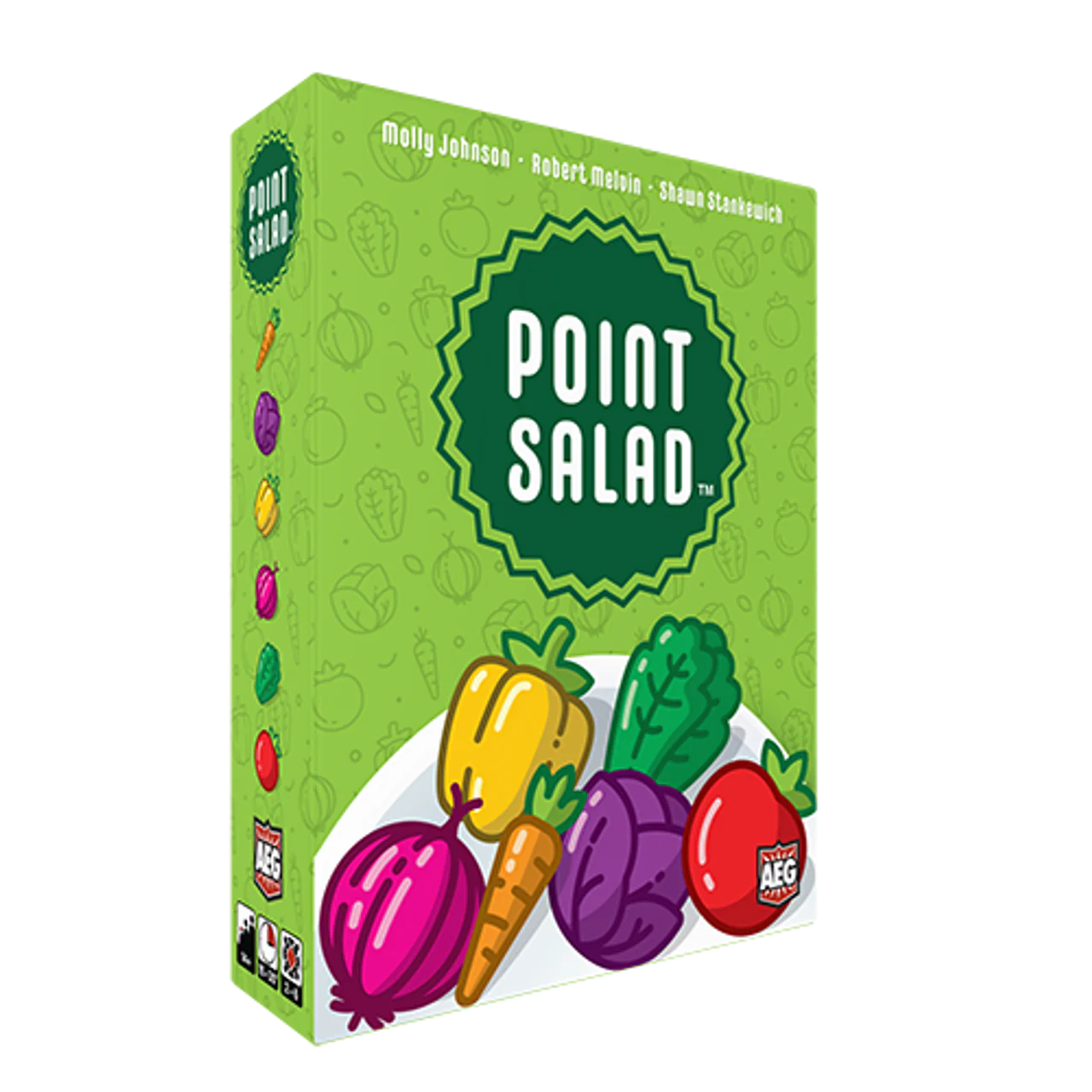 Point Salad is a fast and fun card-drafting game for the whole family! There are over 100 ways to score points. Players may use a variety of strategies and every game of Point Salad is unique!