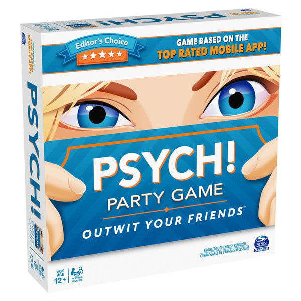 Make up fake answers to real trivia questions and score points when you psych out your friends in this hilarious party game based on the popular app. Choose between 4 categories and read the question, make up an answer and pin it to the board, then wait and see who you psyched out! Win even more points if you pick the right answer!
