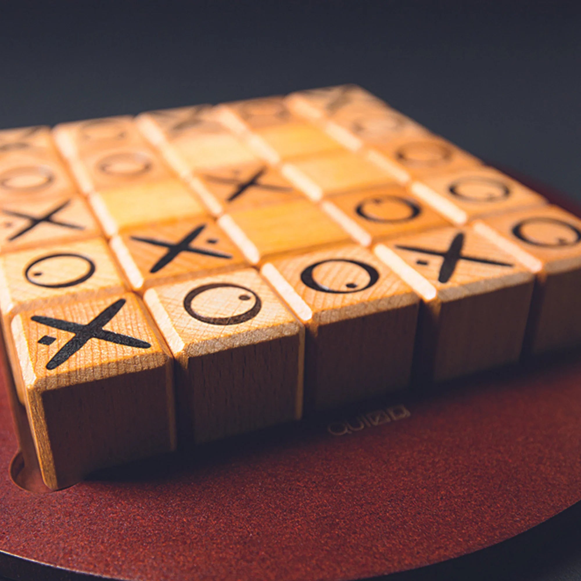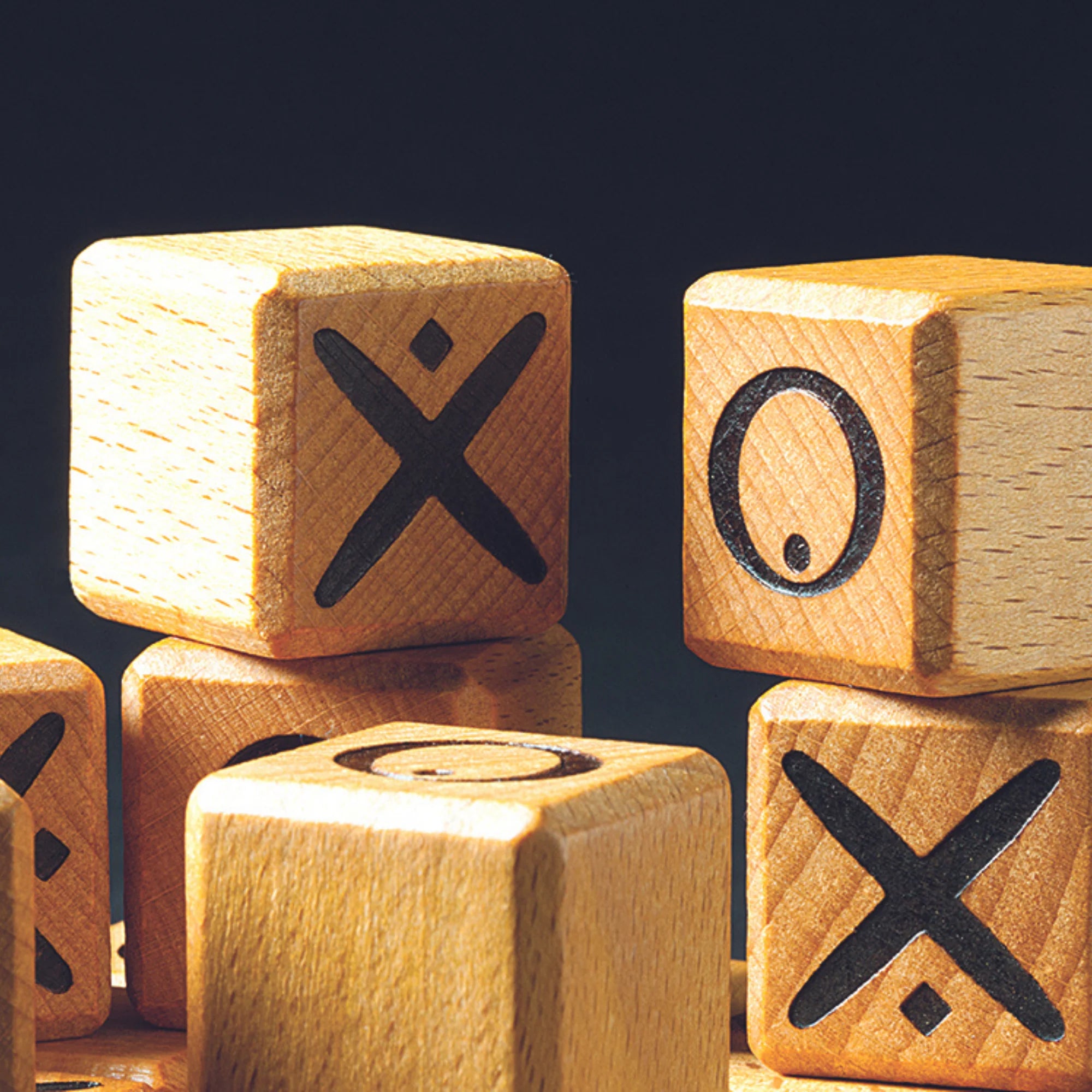 Your goal is to arrange five of your cubes in a row-either horizontally, vertically, or diagonally. Each turn, remove a blank cube from the edge of the board and slide it into the end of one of the rows made incomplete by its removal, pushing the other four cubes together to fill up the empty space. Now the entire row has changed.