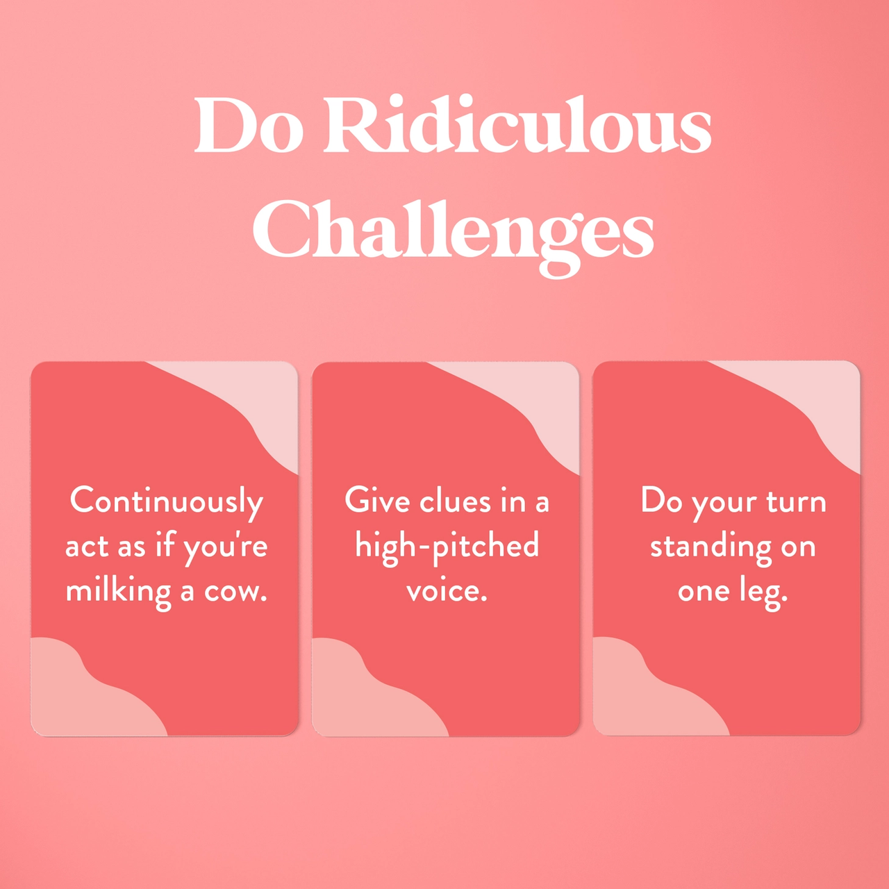Get your friends to guess your team’s Rabble Cards as quickly as possible. Each round uses the same cards but has different restrictions on how to give clues. Play Challenge Cards to slow down the other team by making them do ridiculous challenges such as "fist-bump the air" or "give clues in a British accent."