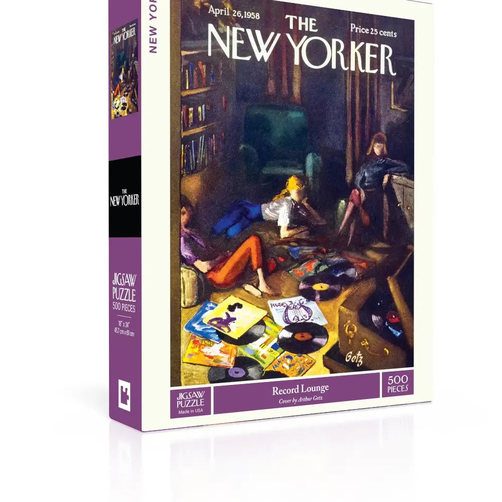 Relive the golden era of music with the "Record Lounge" 500 Piece Jigsaw Puzzle, featuring the iconic artwork from the April 26, 1958, cover of The New Yorker magazine. Illustrated by Arthur Getz, this nostalgic scene depicts a cozy, dimly lit room where young record collectors gather to enjoy the hits of the day. Whether spinning the latest rock-and-roll anthem or soaking in the smooth melodies of jazz, this evocative image brings to life the timeless love of music.