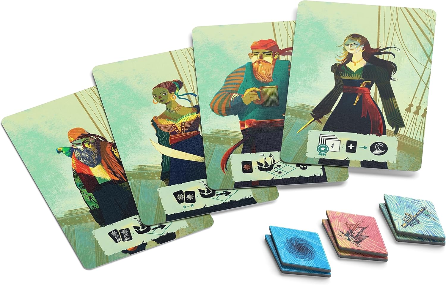 Sail: Seafarers introduces a variety of brand new content to the base game. Included are four new scenarios that challenge players with new hazards they’ll need to overcome, such as whirlpools and pirate ships. Seafarers also introduces four new pirate characters with new pirate powers that add even more ways to strategize and work together.