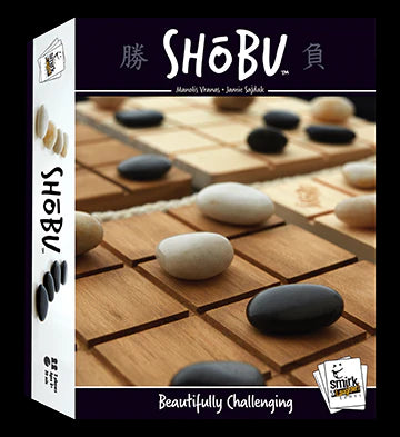 Beautifully Challenging SHOBU is a beautifully crafted abstract strategy game for two players.On your turn: Move one of your stones up to two spaces in any direction, including diagonally. Match that move with another of your stones on the opposite color board – and push an opponent’s stone off the board's edge. Remove all four of your opponent's stones from any ONE board to win. SHOBU is made of beautiful, natural elements, wood boards, a cotton rope divider and tumbled river stones as playing pieces, giving it incredible table appeal. Instantly familiar, yet wholly unique unto its own, SHOBU feels like a game that has stood the test of time. The rules are amazingly simple and can be learned in moments, yet halfway through your first game, you realize the game has a depth and spatial challenge similar to 3-D chess. Simply brilliant.