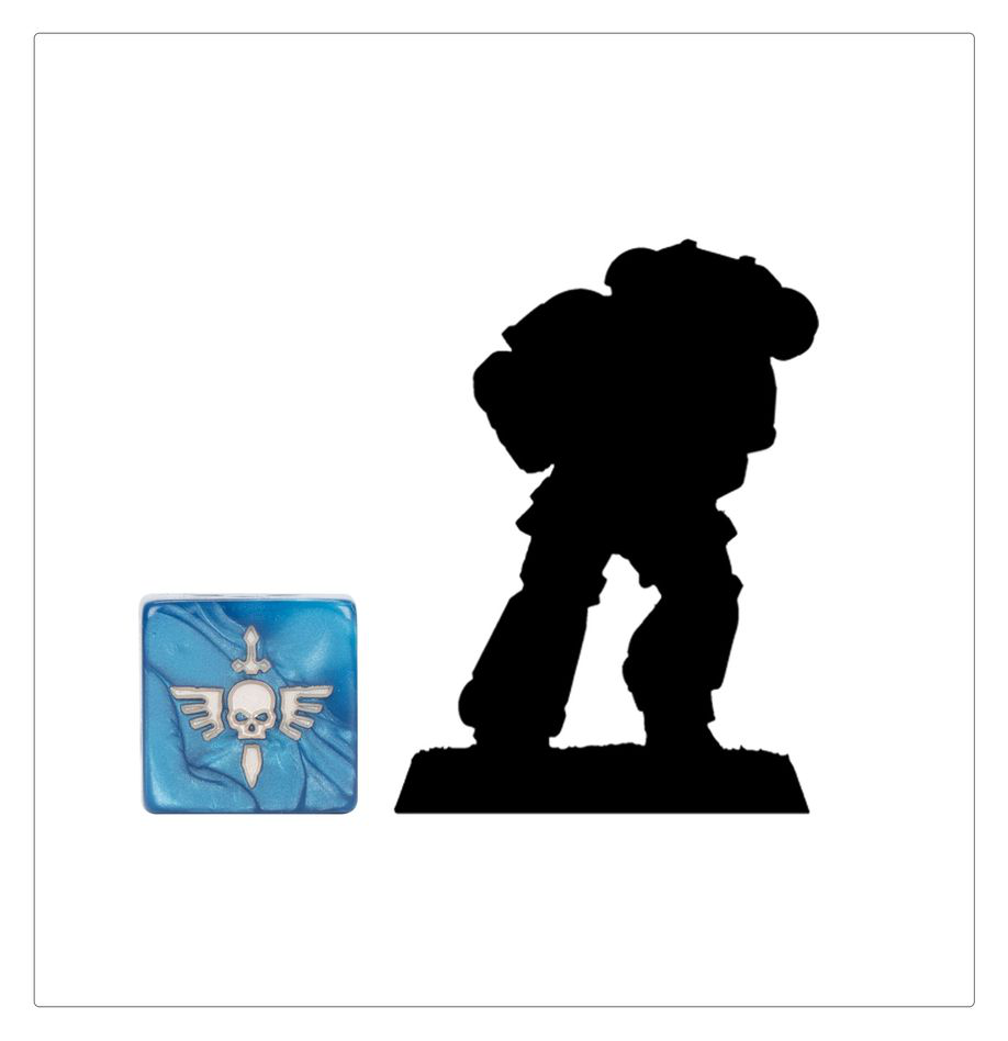 The Adeptus Astartes know no fear, which explains why their armour is painted with bold heraldry and markings. These dice will fit right in with your miniatures, featuring a blue and silver colour scheme.