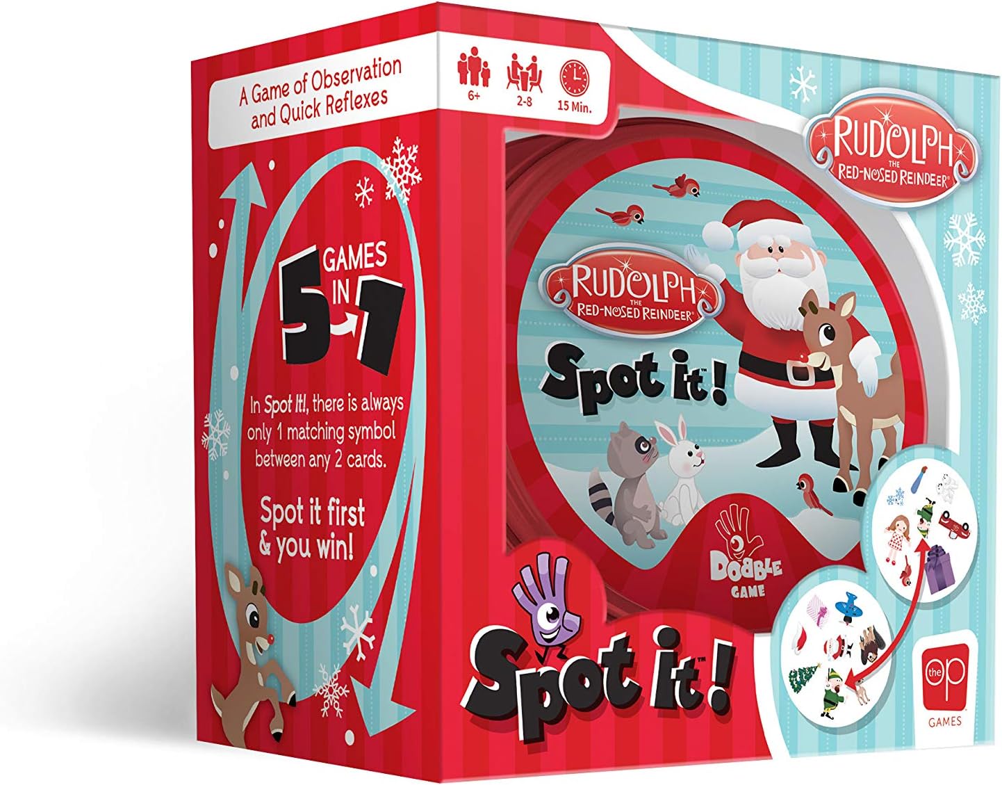 With "Spot It Rudolph," players will embark on a captivating quest to spot matching symbols and characters from Rudolph the Red-Nosed Reindeer. Discover Rudolph and his pals as they hide in an array of vibrant, winter-themed illustrations that depict iconic scenes from the beloved holiday tale. The game guarantees endless laughter as players race against the clock, finding matches between cards and competing to collect the most sets of matching symbols.
