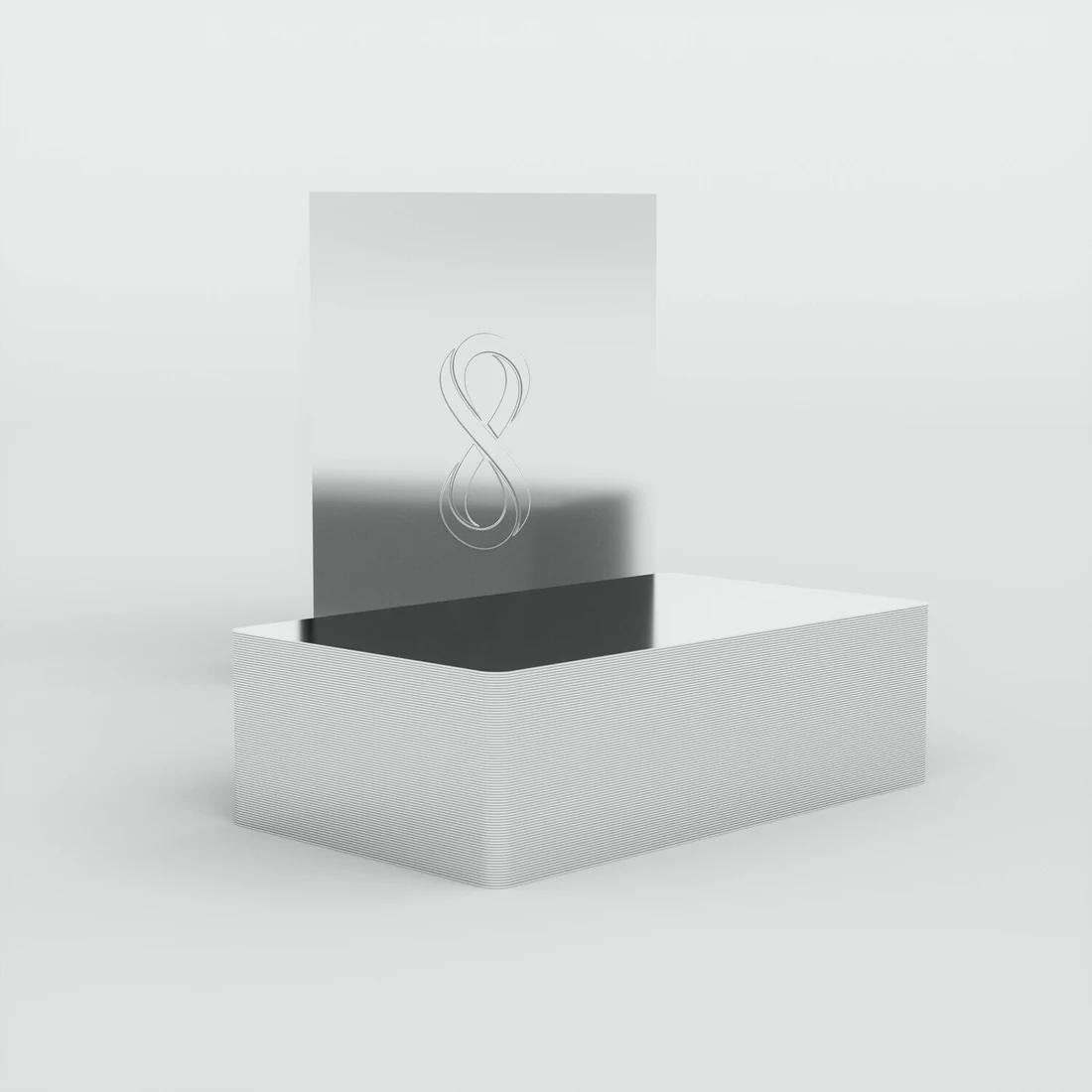Black microfiber cloth with branded infinity loop for removing any fingerprints that may occur on the mirrored finish.