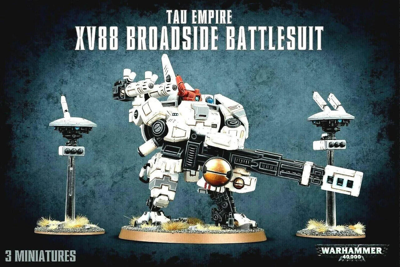 Designed to offer long-range support, the XV88 Broadside Battlesuit has exceeded expectations, becoming a mainstay of the Hunter Cadres and tank-killers of legendary proportions. Powered by a particle accelerator, a Broadside's heavy rail rifle shot can penetrate the thickest plasteel bunkers.