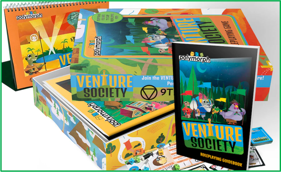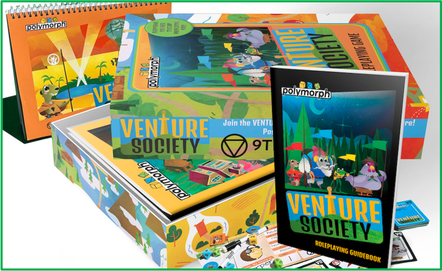 Venture Society is an all-ages, non-violent roleplaying game focusing on building skills related to personal strengths, emotional wellness, social awareness, and communication while having a fun experience.