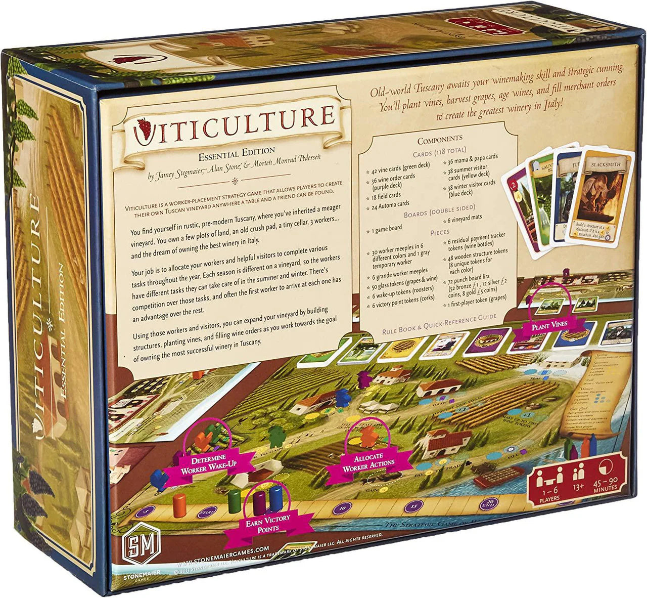 Your job is to allocate your workers and helpful visitors to complete various tasks throughout the year. Each season is different on a vineyard, so the workers have different tasks they can take care of in the summer and winter. There’s competition over those tasks, and often the first worker to arrive at each one has an advantage over the rest.