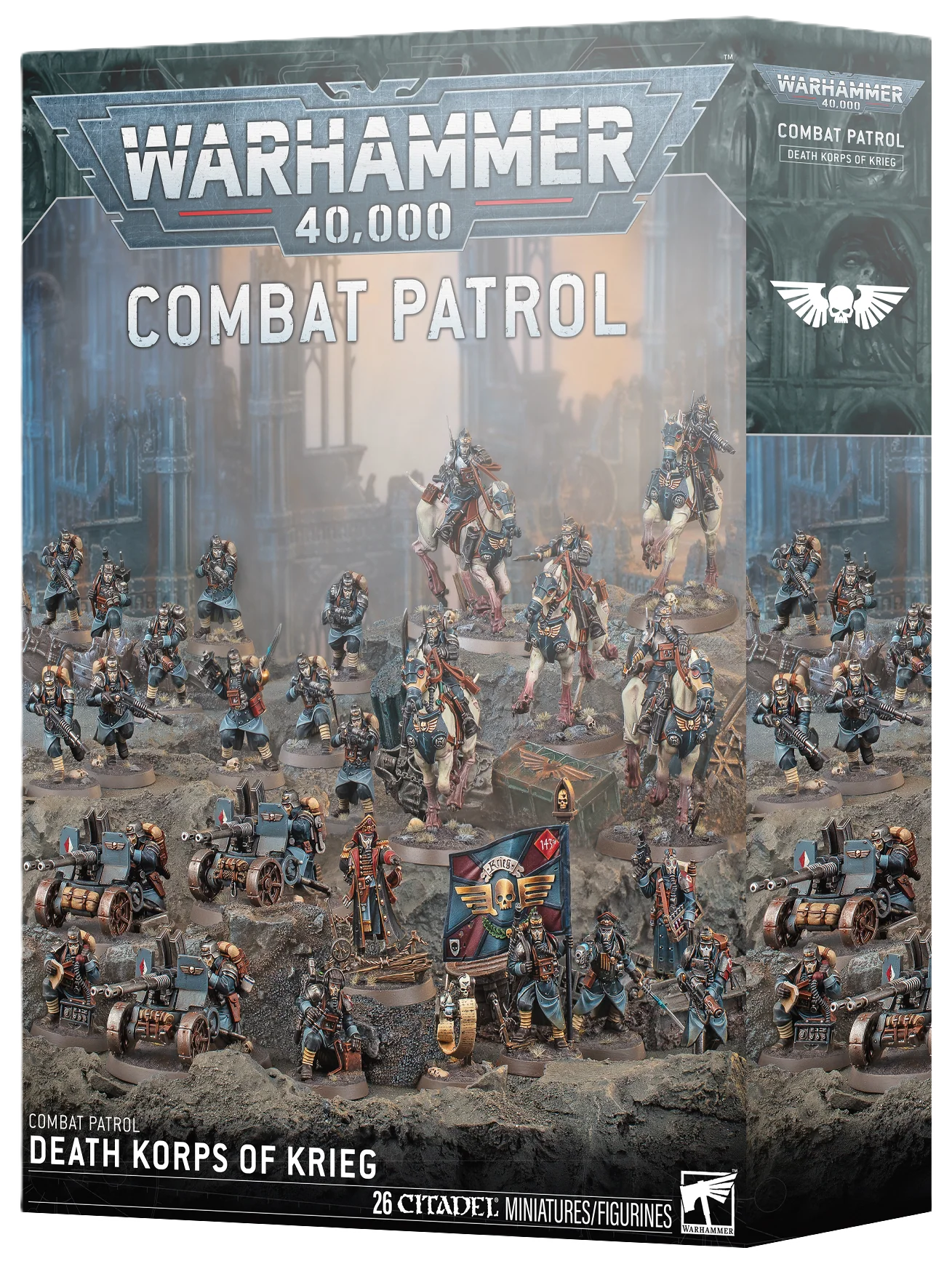 If you want to sacrifice yourself in the name of the God-Emperor, this box is the perfect way to start a new Death Korps of Krieg collection – or expand an existing army – and save money compared to buying the kits individually. A Command Squad lead the charge, followed by a dependable infantry squad. Heavy weapons provide covering firepower while Death Riders outflank the enemy, ready to strike with their vicious sabres. These 26 plastic miniatures represent a complete Astra Militarum force for use in tight, tactical Combat Patrol games of Warhammer 40,000.