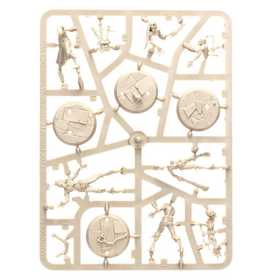 - 7x push-fit Exiled Dead miniatures – no glue required to assemble, cast in a cadaverous grey to stand out even when unpainted