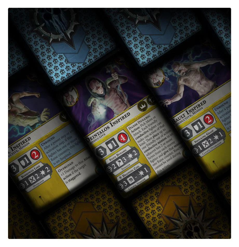 The Exiled Dead are aggressive, but flexible enough to keep your opponents on their toes and play for objectives. Once you get your shambling fighters into a good position, they’ll be tough to tackle. To this end, Deintalos has an ability that will keep them all moving, activating multiple Arcwalkers at once. This box includes a complete Rivals deck, plus loads of extra cards allowing you to try out a few tricks, as well as universal cards and Grand Alliance cards to use with your other warbands.