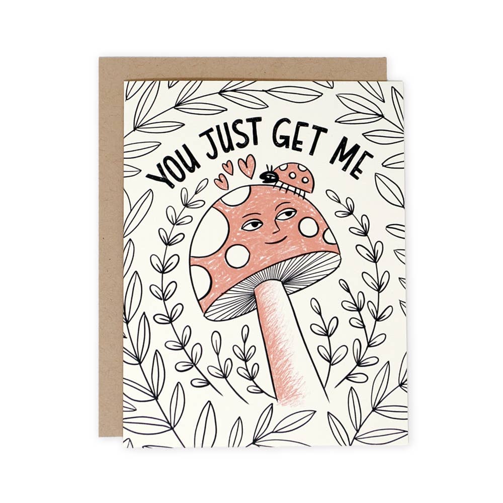 Greeting Card, Blank Inside. One folded 4.25" x 5.5" greeting card and kraft envelope. This original, hand-drawn design was printed on 100# natural white card stock here in Raleigh, NC and packaged in a cellophane sleeve. Blank inside. Made in the USA.