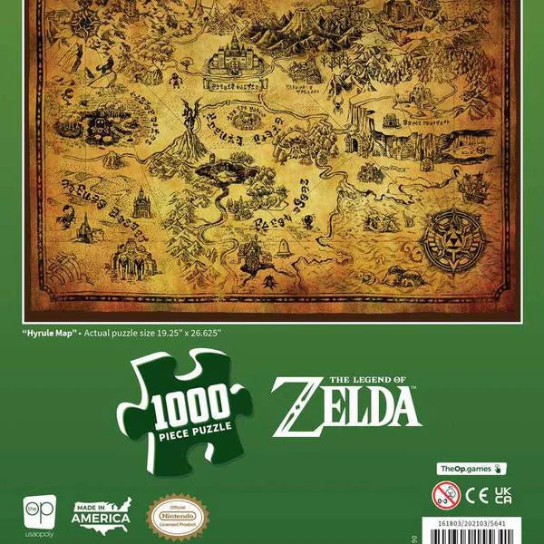 Assemble the compass rose to start navigating this 1,000-piece “Hyrule Map” jigsaw puzzle, featuring an antique-style layout and landmark details.