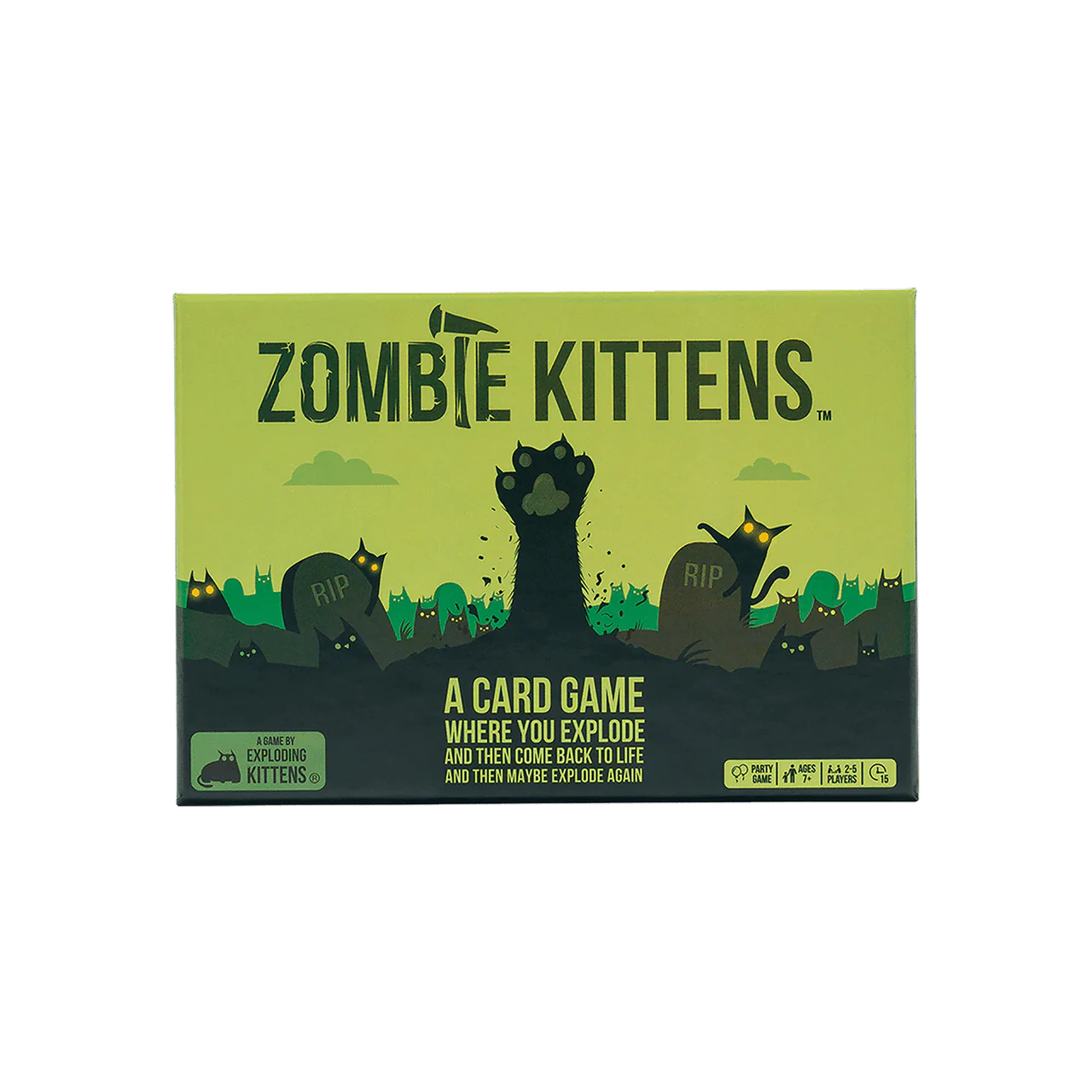 Zombie Kittens features new art on every card in the game and new card mechanics that no one has ever seen before. Zombie Kittens can be played by itself or combined with any other version of Exploding Kittens.